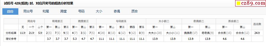 276期福彩3D试机号425对应开奖号的组选分析结果